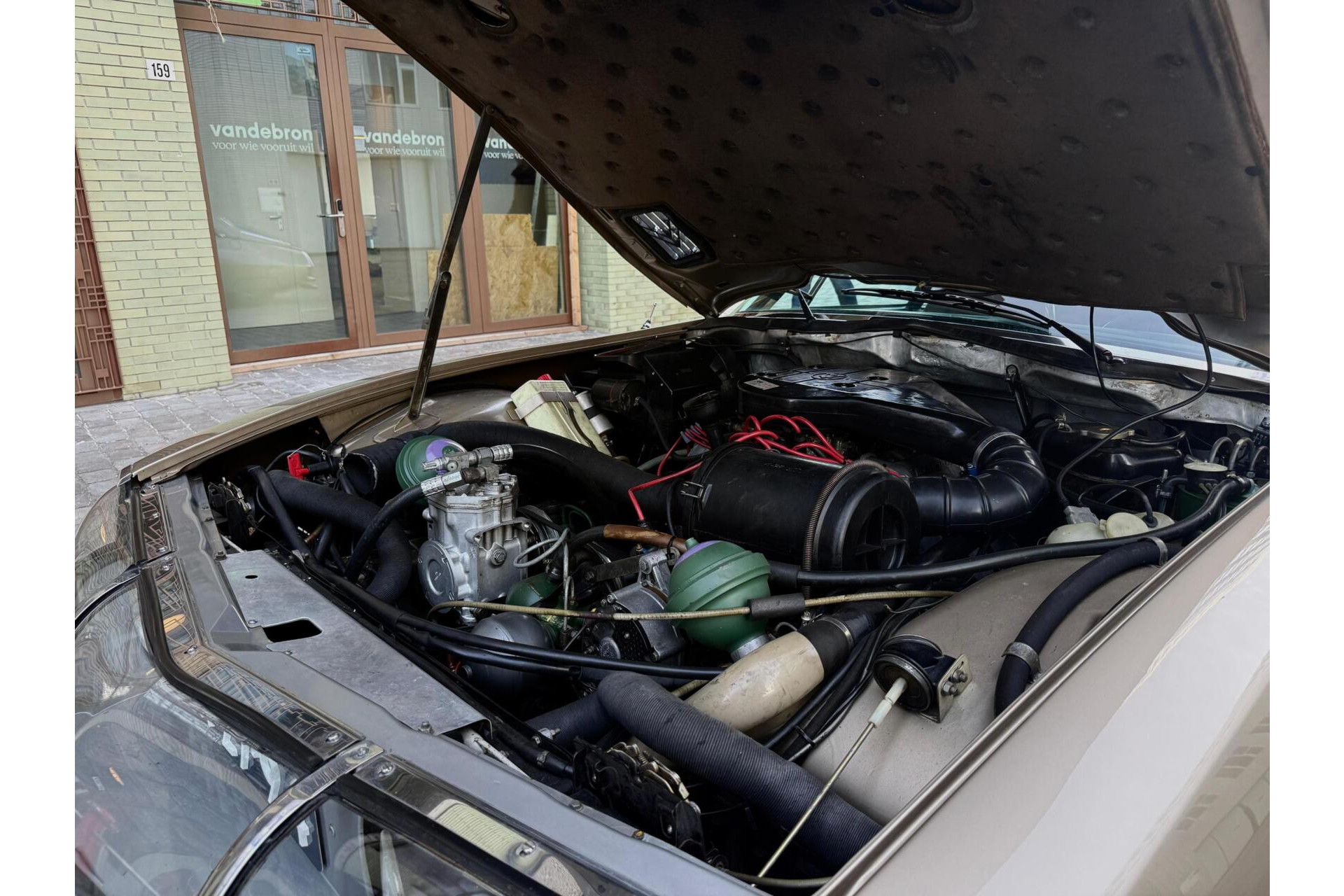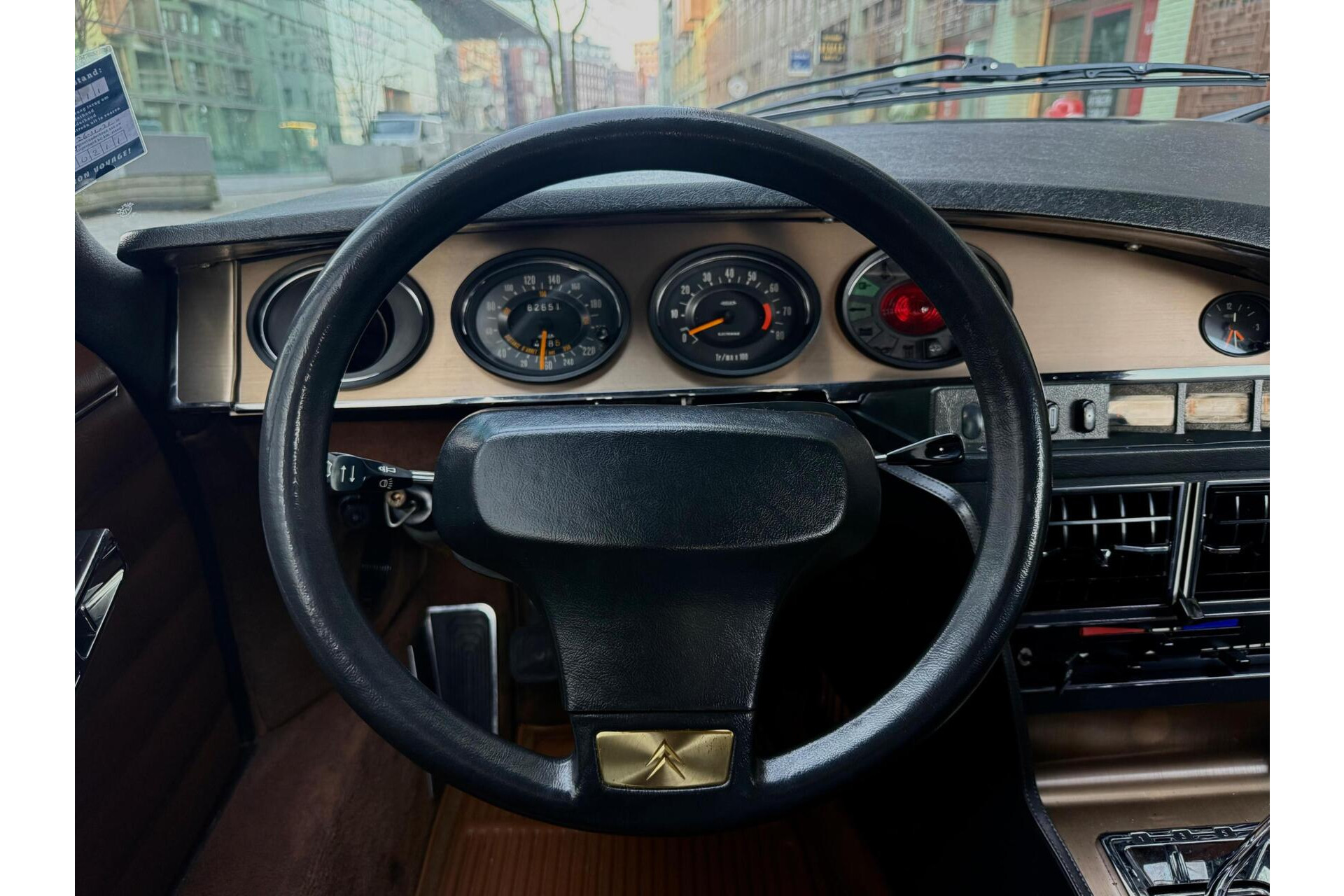 Uitgevoerd in een elegante champagnebeige metallic lak, gecombineerd met een fraai tan lederen interieur, verkeert deze SM in uitzonderlijk goede staat. Zowel technisch als cosmetisch presenteert de auto zich overtuigend: de lak heeft een diepe, gelijkmatige glans, het leder is soepel en verzorgd, en mechanisch voelt de auto precies zoals een goed onderhouden SM hoort aan te voelen.